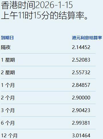智通财经APP获悉,1月15日,港元拆息全线向上98策略,而与楼按相关的一个月拆息终止四连跌报2.84857%,升20.071基点;反映银行资金成本的三个月拆息报2.90423%,升10.352基点。