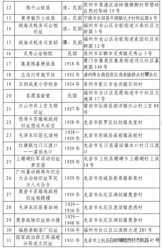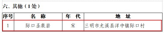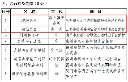 r此次新公布的省级文物保护单位中,三明市古遗址1处,古墓葬1处,古建筑14处(17个点),古石刻及造像2处,其他类1处。这些入选文物保护单位均为具有重要历史、艺术、科学价值的不可移动文物,将按省级文物保护单位标准实施保护管理。