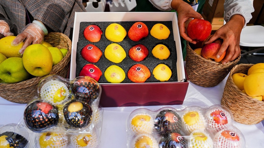 昭通市位于云南省东北部,地处乌蒙山区腹地,气候多样、生态优良,是全国重要的苹果、天麻、竹笋、肉牛生产基地。“昭通苹果”“彝良天麻”“巧家红糖”等地理标志产品享誉省内外。年货节现场,昭通市聚焦“甜蜜、清脆、麻辣、鲜香、医养”五大事业产品,将当地非遗文化与年货产品巧妙融合,带来一场舌尖上的昭通之旅。